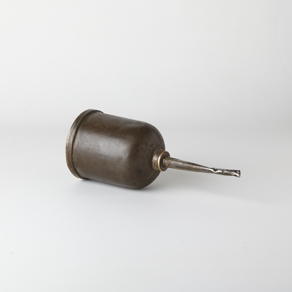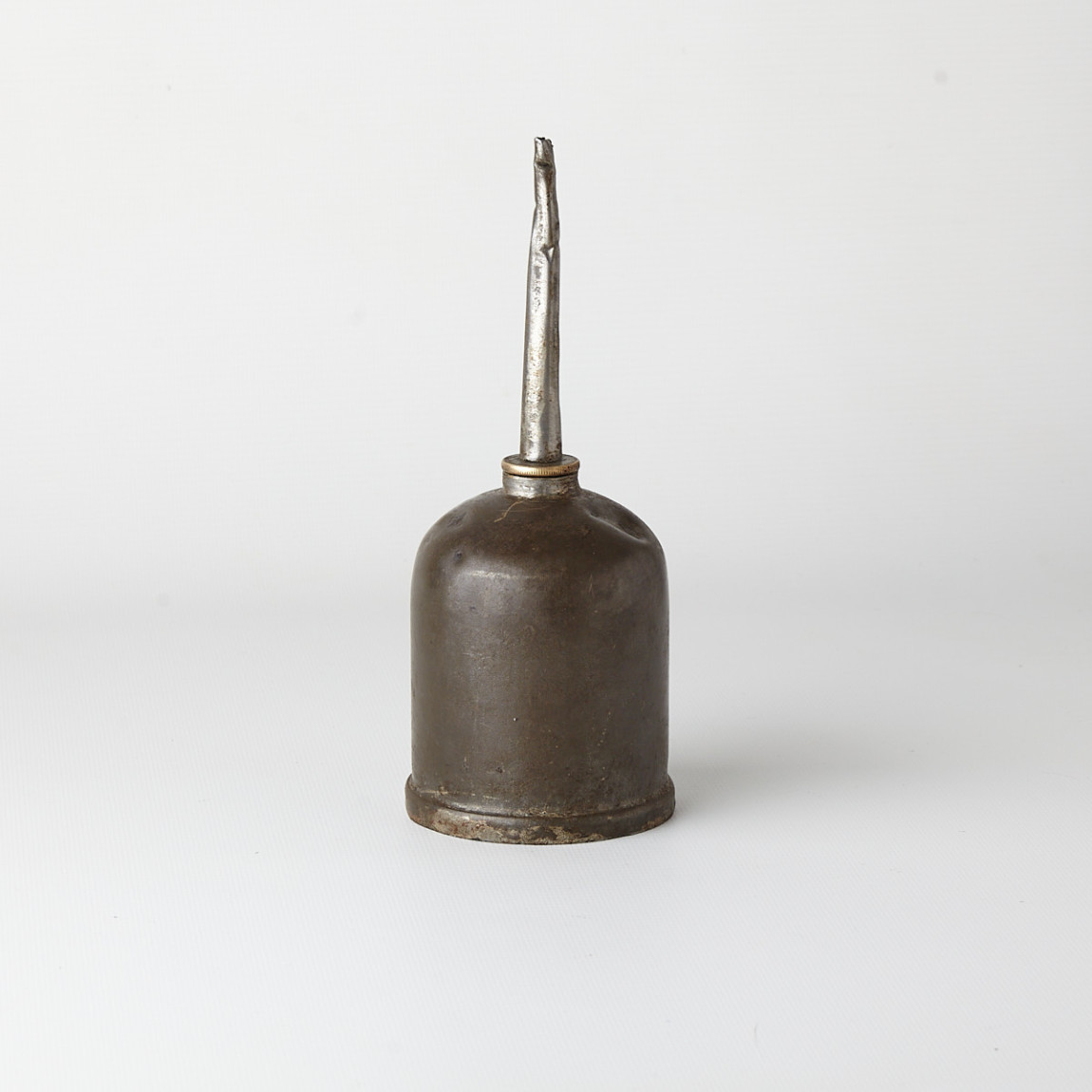 This is a nice old Braimes engineers oil can or oiler, made of pressed steel with nicely soldered seams, a patent-protected pump system built into the base for releasing the oil and a removable spout for refilling. It is stamped Braimes to the underside. In lovely condition, grey in colour, the spout, in my opinion, would originally have been a little longer. It is free from leaks and still functions as it should. It has been cleaned and is ready for display or reuse.